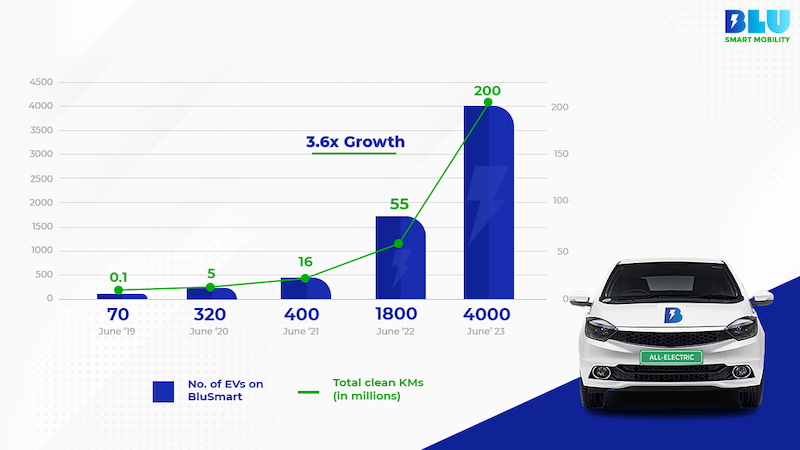 On the occasion of World Environment Day, 5th June 2023, EV ride-hailing service and EV charging superhub infrastructure operator, BluSmart Mobility, announced that it has achieved a milestone of completing over 200 million clean kilometres through more than 6 million zero-emission trips in its EV fleet since its establishment in 2019.