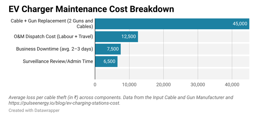 If not addressed, cumulative losses from theft incidents could reach ₹crores by 2030, even without accounting for indirect impacts such as reputational damage and the erosion of user trust in public EV charging infrastructure.