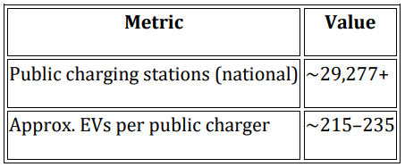 In Madhya Pradesh, the situation is more acute: there is approximately 1 public charger for every 200 EVs.