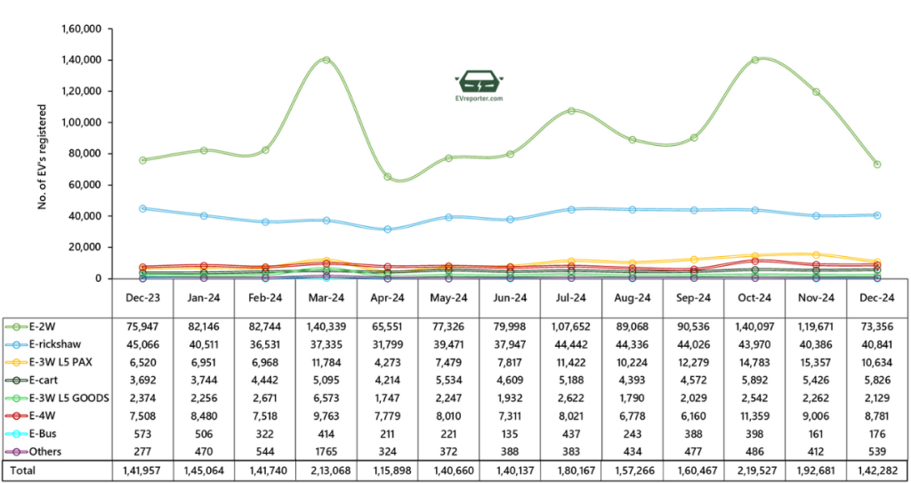 Total Registered Electric Vehicle Sales – Dec’24 – 1,42,282 I Nov’24 – 1,92,681