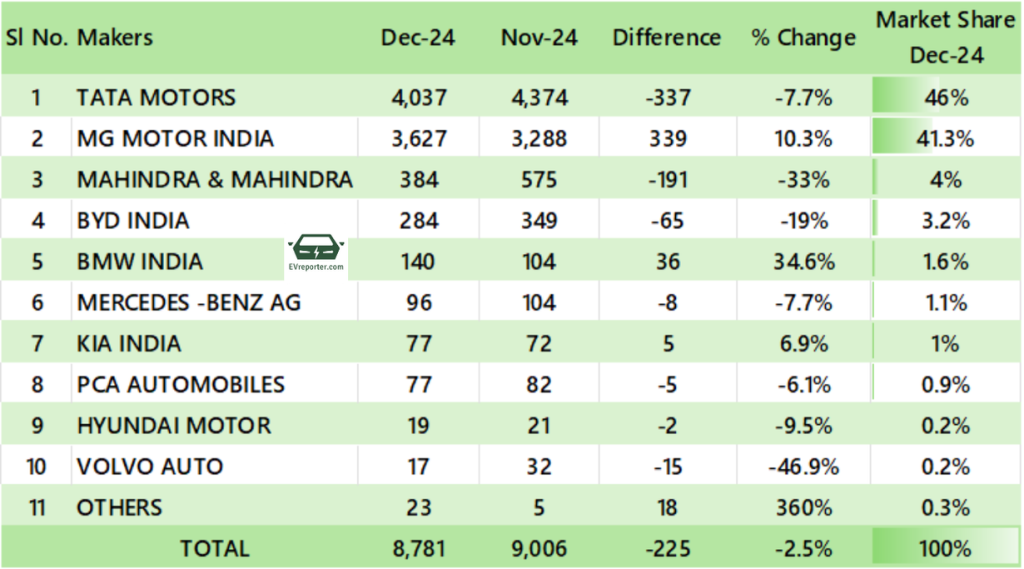 OEM wise E-4W Sales, Dec 2024