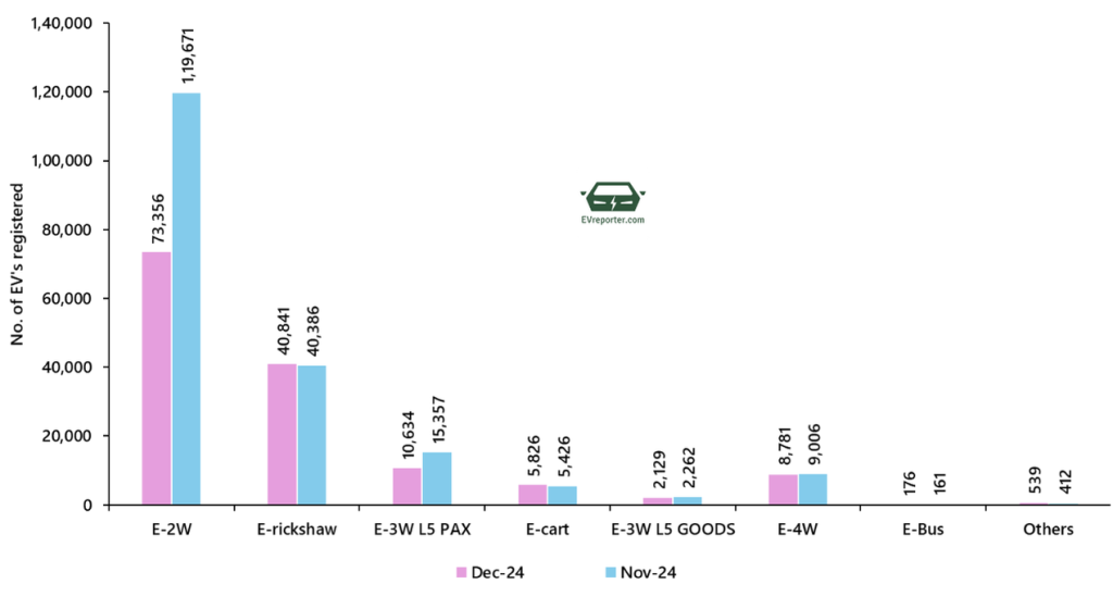 Category-wise Electric Vehicle sales, Dec 2024 | India