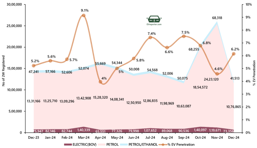 Fuel wise 2-Wheeler Sales Trend, Dec 2023 – Dec 2024