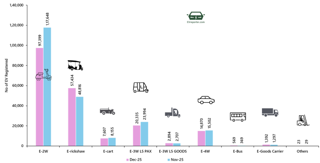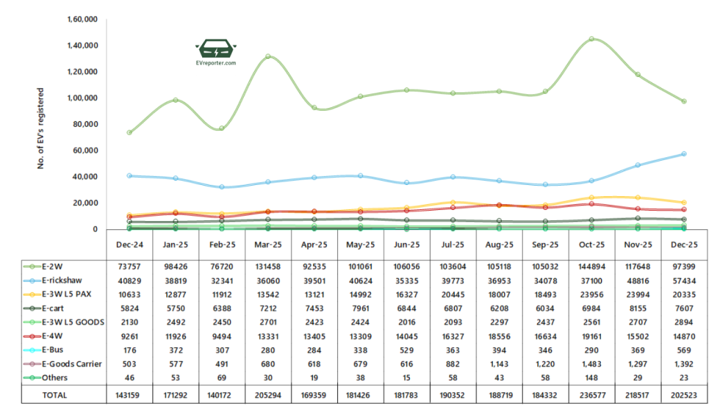 Total Registered Electric Vehicle Sales – Dec’25 – 2,02,523 I Nov’25 – 2,18,517