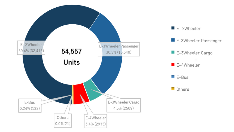 E-2W and E-3W (Cargo & Passenger) vehicles accounted for 51,465 of the total 54,557 electric vehicles sold in February 2022.