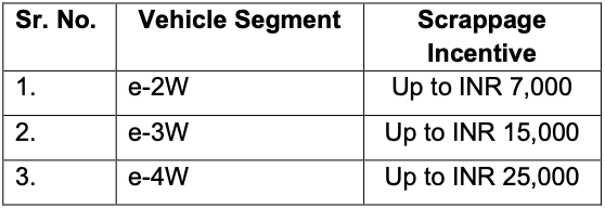 – The vehicles eligible for demand incentives under this policy will be eligible for the scrappage incentive.