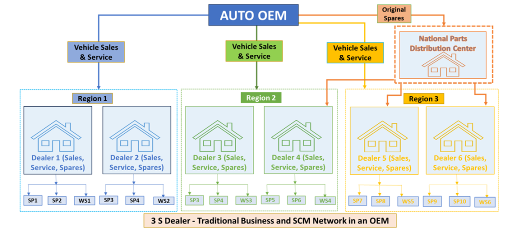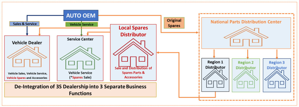 Most OEMs start 3S Dealer Networks as Sales-Service-Spares under a single roof (as shown in the above picture).