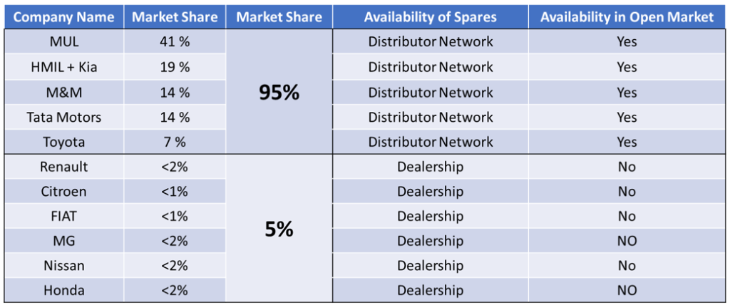 So, what has been the game-changer?! The availability of Original Spares in the open market has allowed and encouraged independent SPs to mushroom and grow. This growth has been translated into Customer Confidence in the product. The Customer Confidence created a Belief System in OEM. And that has translated into vehicle sales.