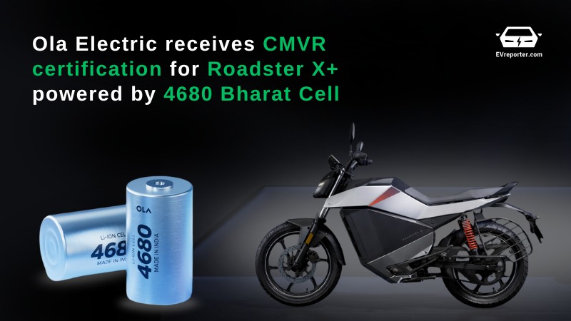 Ola Electric announced that its electric motorcycle, the Roadster X+ (9.1 kWh), powered by an in-house developed 4680 Bharat Cell battery pack, has received approval under the Central Motor Vehicle Rules (CMVR), 1989 from the International Centre for Automotive Technology (iCAT), Manesar. iCAT is a government-authorised vehicle testing agency.