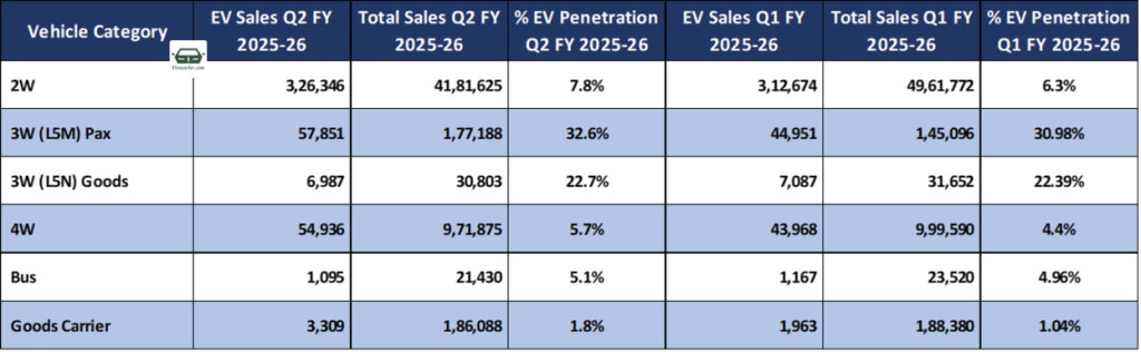This is an excerpt from EVreporter FY2025-26 Q2 report. The full report, including state-wise and top OEM-wise sales and policy updates, new launches and investments in the quarter is available on the EVreporter Data Portal.